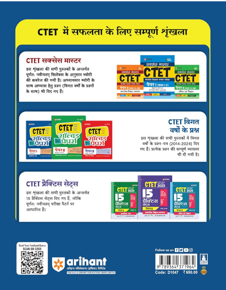 Solved Papers provides a real-time exam experience, allowing candidates to familiarize themselves with the types of questions that can appear on the actual CTET exam. By solving these papers, candidates get an in-depth understanding of the exam pattern, marking scheme, and structure of questions, which helps in time management. For CTET 2025 Paper I (Class I-V), the present Hindi book is revised and contains 33 sets of solved papers from 2014 to 2024 with detailed explanations of questions.