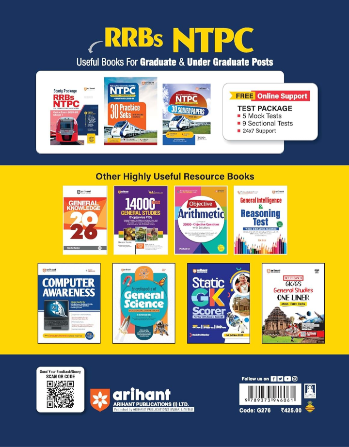 Be the first to review “Arihant RRBs NTPC Study Package 2025–26 Stage 1 | Non-Technical Popular Categories (Graduate & Under Graduate Posts) | Based on Latest Exam Pattern | … | Free Online Support | English Medium”