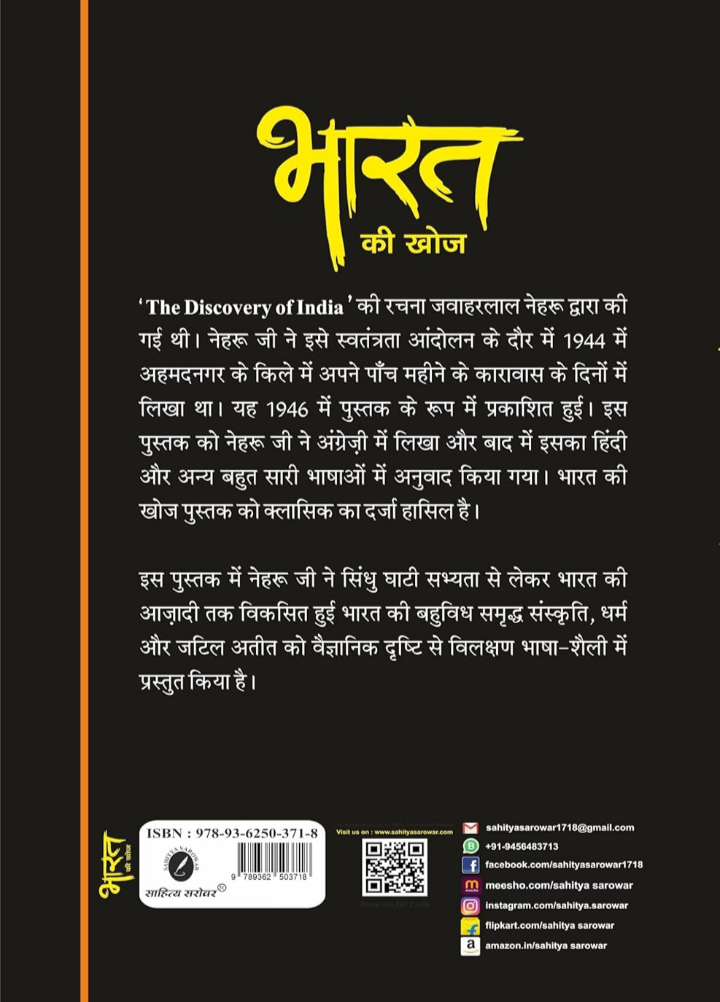 Bharat Ki Khoj (Hindustan Ki Kahani), written in Hindi as The Discovery of India, is the timeless classic by Pandit Jawaharlal Nehru, India’s first Prime Minister. Written during his imprisonment at Ahmednagar Fort (1942–1946), this book presents not only the history of India but also Nehru’s deep reflections on its culture, civilization, philosophy, and spirit of unity. In this Sampurna Sanskaran (Complete Edition), readers are taken on a grand journey from the Indus Valley Civilization to the freedom movement, exploring India’s rich traditions, spiritual heritage, and socio-political changes over centuries. Nehru’s narrative blends historical facts with his personal vision, making the book more than just history—it becomes a story of India’s soul.