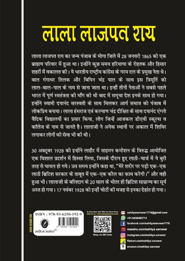 “Lala Lajpat Rai Prernadayak Jeevani” is a powerful and thought-provoking biography that brings to life the inspiring journey of one of India’s most respected freedom fighters. Known as the ‘Punjab Kesari’, Lala Lajpat Rai was not just a political leader but a true patriot, reformer, and voice for social justice. This Hindi biography provides readers with an in-depth look at Lala Lajpat Rai’s early life, education, and the values that shaped him. From his formative years in Punjab to his involvement in the Indian National Movement, the book follows his transformation from a young student into a fearless leader who stood at the frontlines of India’s struggle for independence.